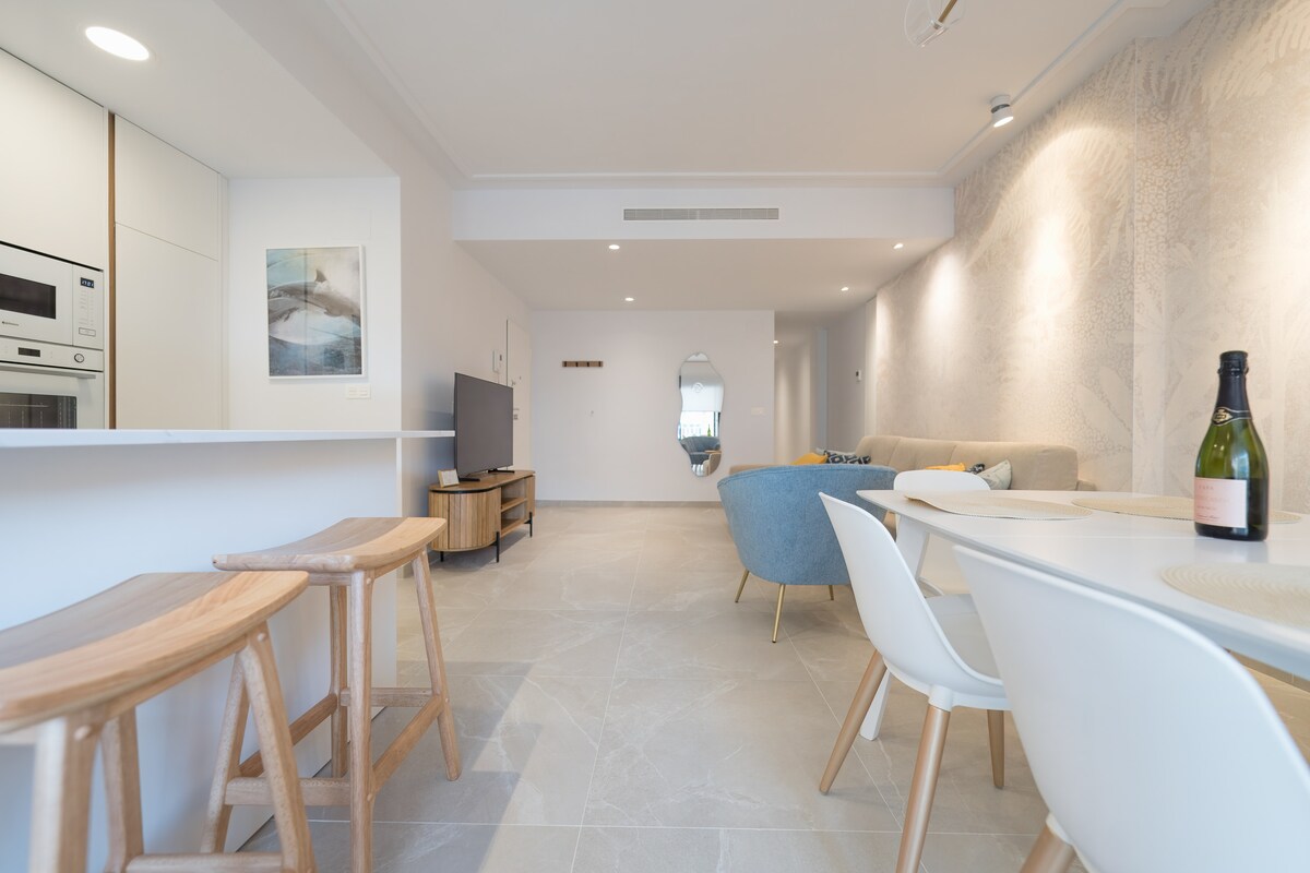 Popolnoma prenovljeno in popolnoma opremljeno svetlo stanovanje s 4 dvoposteljnimi spalnicami in 2 popolnima kopalnicama. Salon je ogromen, kuhinje pa so ločene in tudi lepe velikosti. Ker je stanovanje prvovrstno, je najbližja plaža le nekaj korakov stran od vhoda. Osrednja plaža »Playa del Cura« je najboljša v mestu. Vsaka restavracija in bari so odprti skozi vse leto. To stanovanje je torej najboljše za družinske poletne počitnice ali prijeten dolgi vikend s soncem v vsakem letnem času.
