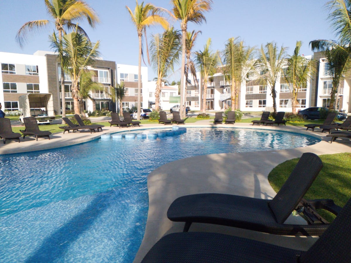 Preživite nepozabno bivanje v Acapulcu v družbi družine in prijateljev. Bivajte v tem čudovitem novem pritličnem stanovanju z zasebnim jacuzzijem, ki se nahaja na območju Diamante v Acapulcu. Uživajte v Beach Clubu s hrano in pijačo, teniškim igriščem, odbojko, veslaškim tenisom, namiznim tenisom, bazeni, palapami in zasebnim dostopom do čudovite plaže Acapulco. 5 minut vožnje z avtomobilom od nakupovalnega središča La Isla, restavracij, supermarketa, letališča.