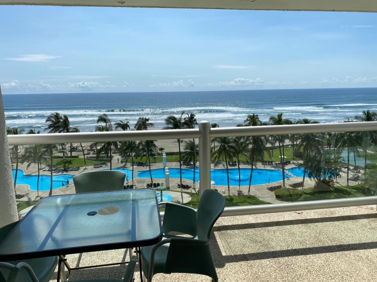 PUNTA DIAMANTE Super exclusive condo on the beach 5th P Huge stay with SEA VIEW 2 Rec with 2 Mat beds each + sofa bed Mat, furnished terrace, TV 86" Netflix, Air Conditioning WI FI 100 M, exclusive palapa on the beach, Jacuzzi in the pool, water games for children, Snack bar weekend and high season, check in 24 hrs 1 parking cost identification becelet $ 150 pesos Mex is paid in Administration, near Supermarkets, golf- Tennis restaurants bars POZOR, LILIA IN JORGE