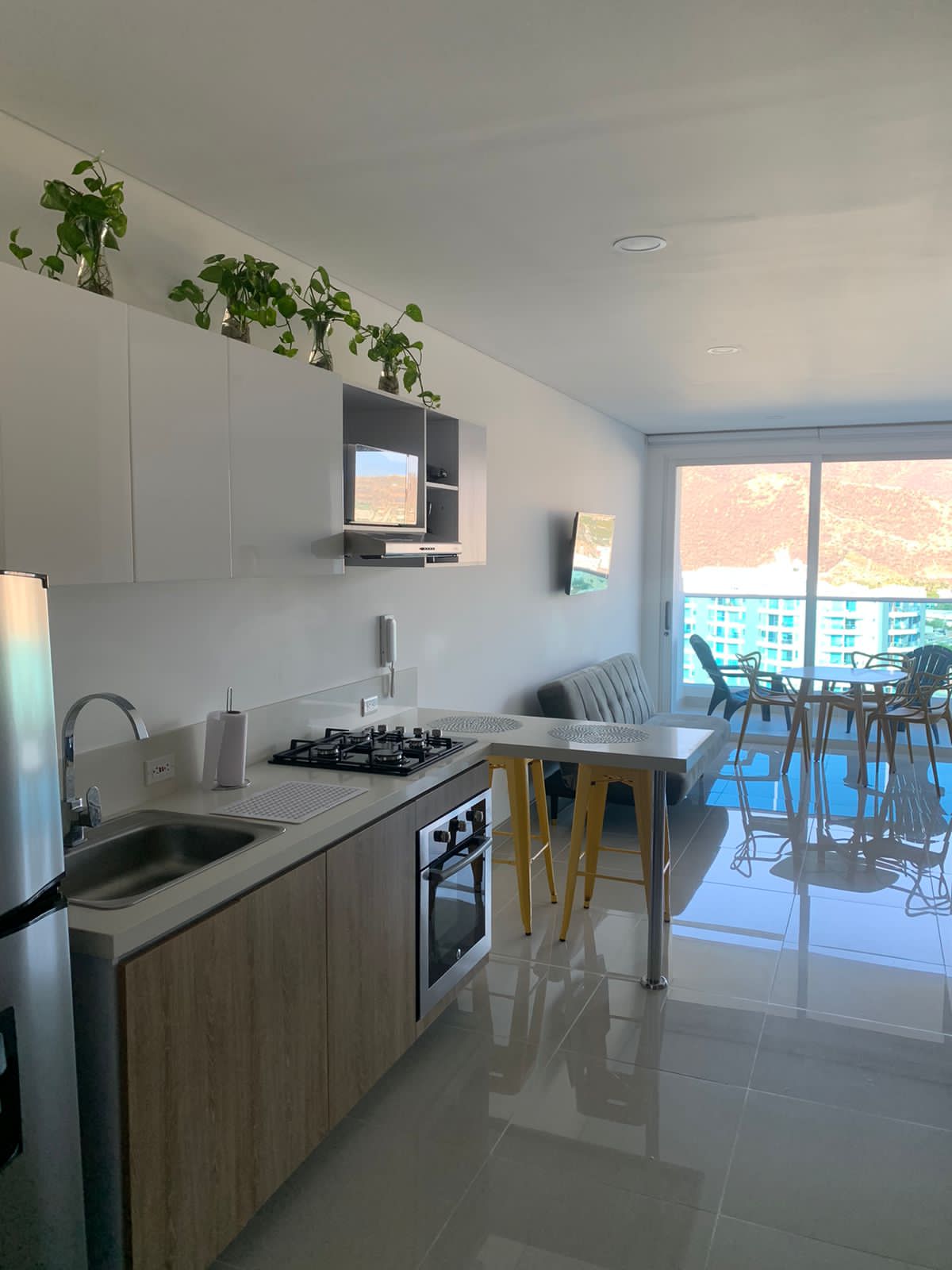 Welcome to our brand new apartment in Ambar Roca, located 5 min from the beach. Fully equipped, located in one of the most exclusive and quiet areas of Rodadero Sur, to relax or explore the magic of Santa Marta. -Air-conditioned rooms -Modern and bright spaces -Fully equipped kitchen and laundromat -Balconies with sea and mountain views -Access to swimming pool, gym, cinema room, sauna, coworking, playground -Located a few steps from supermarkets, mall, and local restaurants