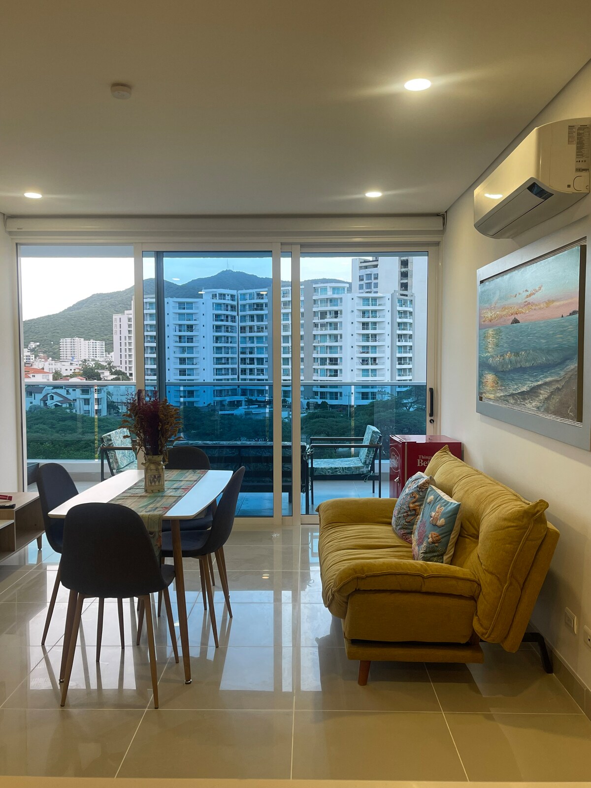 Obljubljamo, da vas bo razgled z našega balkona navdušil, zlasti sončne zahode!!! Sprostili se boste v sodobnem stanovanju v enem od najboljših klubov na plaži v Santa Marti! Stanovanje ima lepo dekoracijo, Wi-Fi in popolnoma opremljeno kuhinjo. V stavbi najdete bazene, masažno kad, bar, restavracijo, zasebni dostop do plaže in še več. Šotori na plaži so v lasti kluba na plaži in so brezplačni. Plaža je zelo mirna in brez gneče (v primerjavi z Rodadero :P)