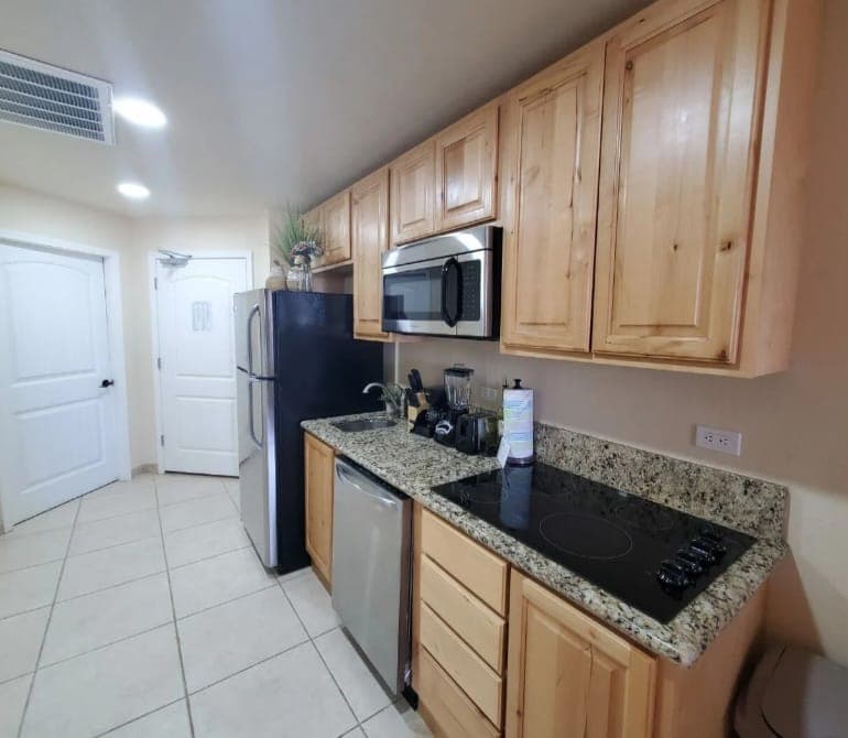 Welcome to our recently remodeled industrial-style one-bedroom condo with an amazing pool, 3 blocks from the beach. Our place is a unique loft, open-plan living, with exposed brickwork and stunning artwork. An ideal base to explore Puerto Peñasco. Modern kitchen with concrete counters, coffee maker and all new appliances. Wifi and gated parking area are included. The loft has a 1 queen size bed also a small sofa bed in the living room. Close to Pitaya bar, Manny's beach and Alcapone Pizza!