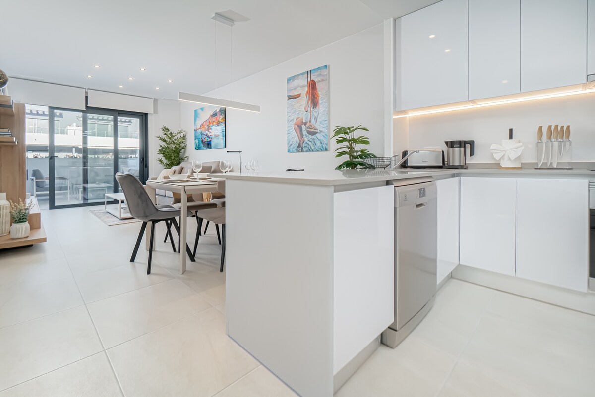 Flamenca Village Perla del Mar is an elegant apartment located on the first floor of the prestigious Playa Flamenca Village complex in Orihuela Costa. Its stylish interior and large private terrace create the perfect setting for relaxation under the Spanish sun. This is a place where comfort and elegance meet the unique charm of the Mediterranean coast CV-VUT0520292-A