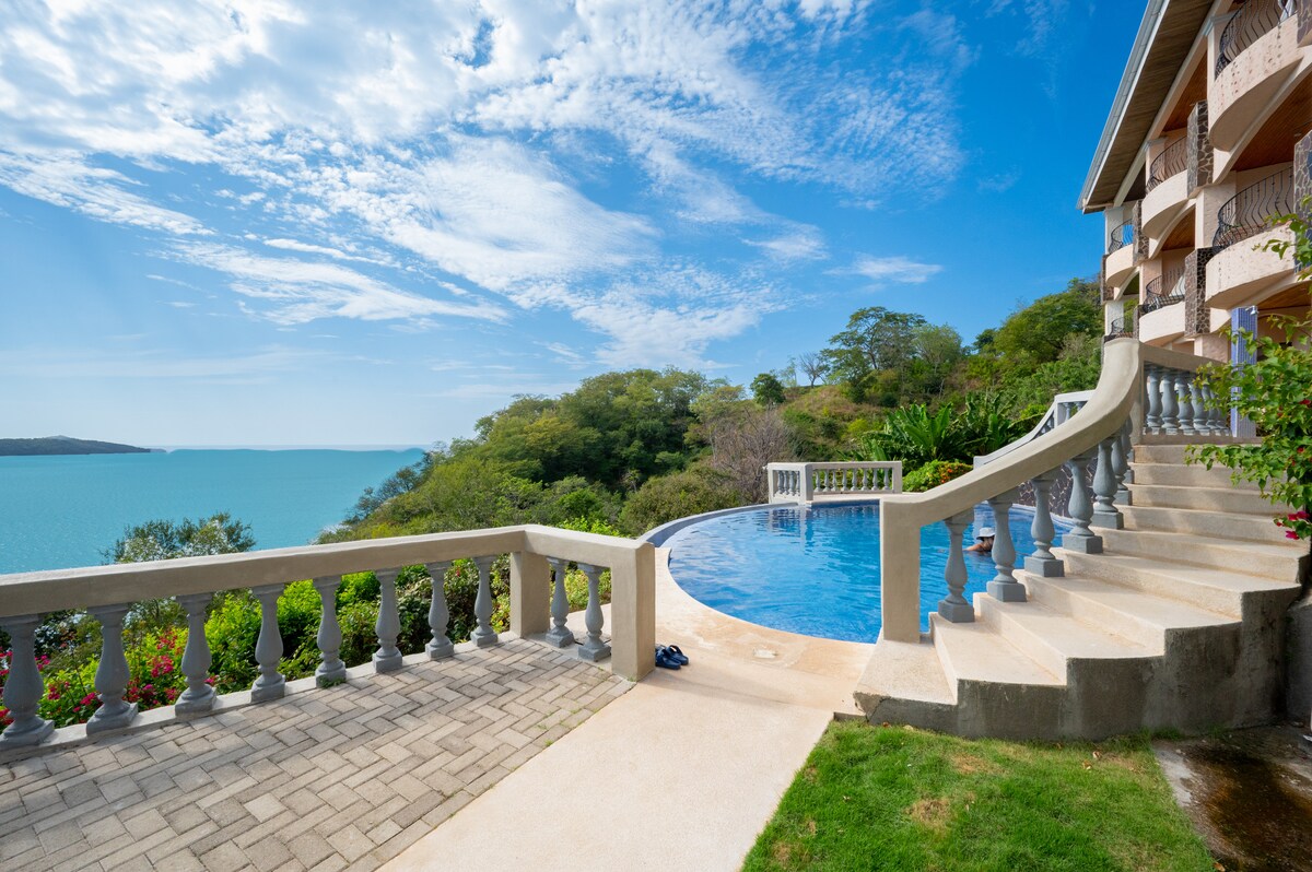Dobrodošli v »La Casa De Las Vistas«, imenovan »Hiša razgledov«. Ta edinstvena namestitev se nahaja visoko na polotoku Flamingo in ponuja 180-stopinjski pogled na slavno plažo Flamingo, zaliv Potrero in pogled iz ptičjeperspektive na popolnoma novo čudovito zgrajeno marino Flamingo. Ne glede na to, ali uživate v čarobnem sončnem zahodu z našega notranjega/zunanjega klimatiziranega balkona ali se zbudite ob čudovitem sončnem vzhodu iz vaše luksuzne spalnice s pogledom na ocean, ta namestitev zagotavlja resnično mirno izkušnjo.