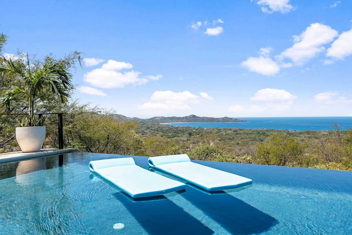 Na novo prenovljeno. Bivajte v čudoviti vili z zasebnim neskončnim bazenom, ki se nahaja v varni skupnosti, v bližini najlepših plaž v Kostariki. V celoti prenovljen leta 2025, ponuja sodobno udobje in osupljiv razgled. • 2 klimatizirani spalnici z zasebnimi kopalnicami • Odprite prostor s polno kuhinjo in udobno dnevno sobo • Zunanja jedilnica za spektakularen sončni zahod • Wi-Fi, detektor in ograjeno parkirišče