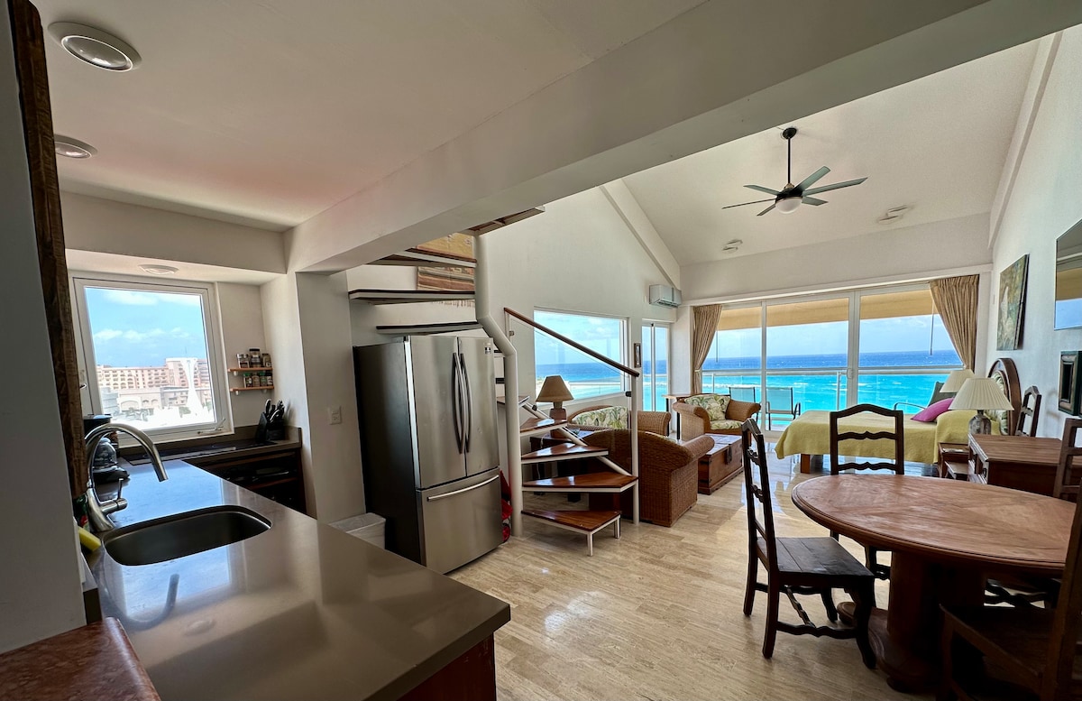 Prekrasen oceanski Penthouse neposredno na plaži Cancun sredi hotelske cone, čudovit razgled! Objekt vključuje kuhinjo, 1 zakonsko posteljo, 2 zakonski postelji, 2 kopalnici, klimatsko napravo, naprave, in še več. Manj kot 1 blok stran od nočnega življenja, sodobne udobnosti, kot so lokacija najetega avtomobila, nakupovalno središče, priljubljene restavracije (Hard Rock Cafe, Carlos N Charlies) in bari. Stopite naravnost iz preddverja na pesek na eni od najlepših plaž v Cancunu.