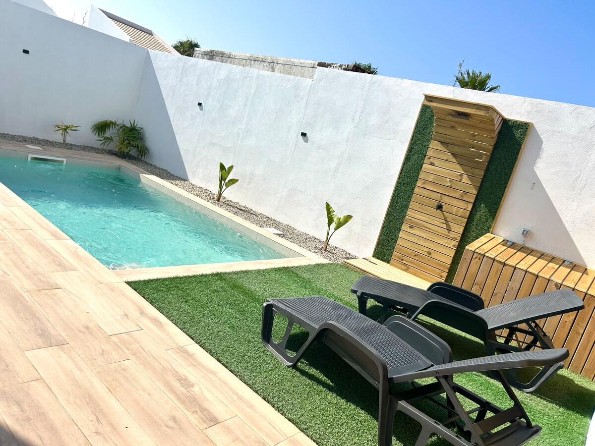 Izjemna individualna vila na plaži la Barrosa. Lokacija, polna svetlobe, miru, tišine in dobrih občutkov. Velik vrt z zasebnim bazenom, žarom, 3 spalnicami, 2 kopalnici, dnevna soba s kaminom, jedilnica, kuhinja, veranda. Območje z vsemi vrstami bližnjih storitev in enostavnim dostopom, 5 min. od plaže in 15 min. od igrišča za golf Sanctipetri . Popolnoma opremljen za popolne počitnice. Če iščete idealno prenočišče, vas ta čudovita hiša ne bo razočarala.