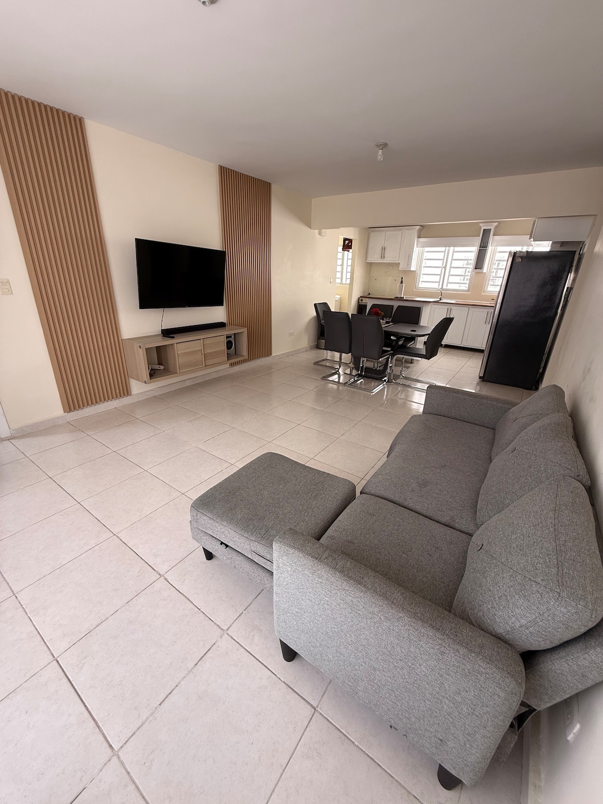 Enjoy this modern, fully equipped penthouse located in a safe, central area, just 5 minutes from Playa Los Almendros and the center of Peravia (Baní). The apartment features 3 bedrooms, 4 bathrooms, air conditioning, spacious closets, parking for 2 vehicles, and amenities including a gym, children’s play area, and event space on the 5th floor. Billiard table is for adults only. Optional services: vehicle rental and airport transfers. No elevator.