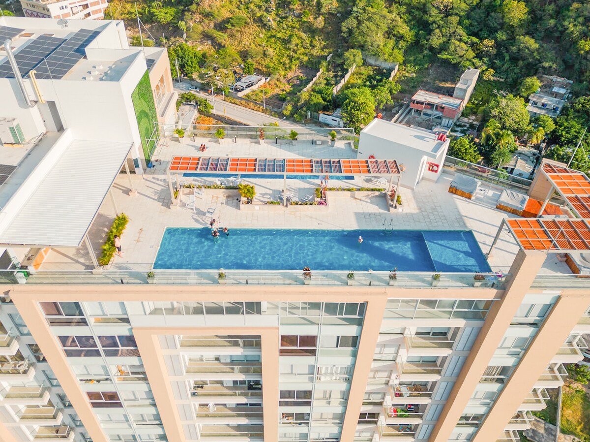 🏖️ Dobrodošli v raju v El Rodaderu v Santa Marti! Uživajte v našem sodobnem stanovanju s spektakularnim razgledom na ocean v najbolj ekskluzivnem predelu El Rodadera. 🌟 POSEBNOSTI: - klimatska naprava, - Visokohitrostni Wi-Fi - Bazen na strehi s pogledom na ocean - 3 minute od plaže 📍 POPOLNA LOKACIJA - 15 minut stran od letališča. - V bližini restavracij, supermarketov - Enostaven dostop do parkov Parque Tayrona, Taganga in Minca Idealno za pare, družine in digitalne nomade.