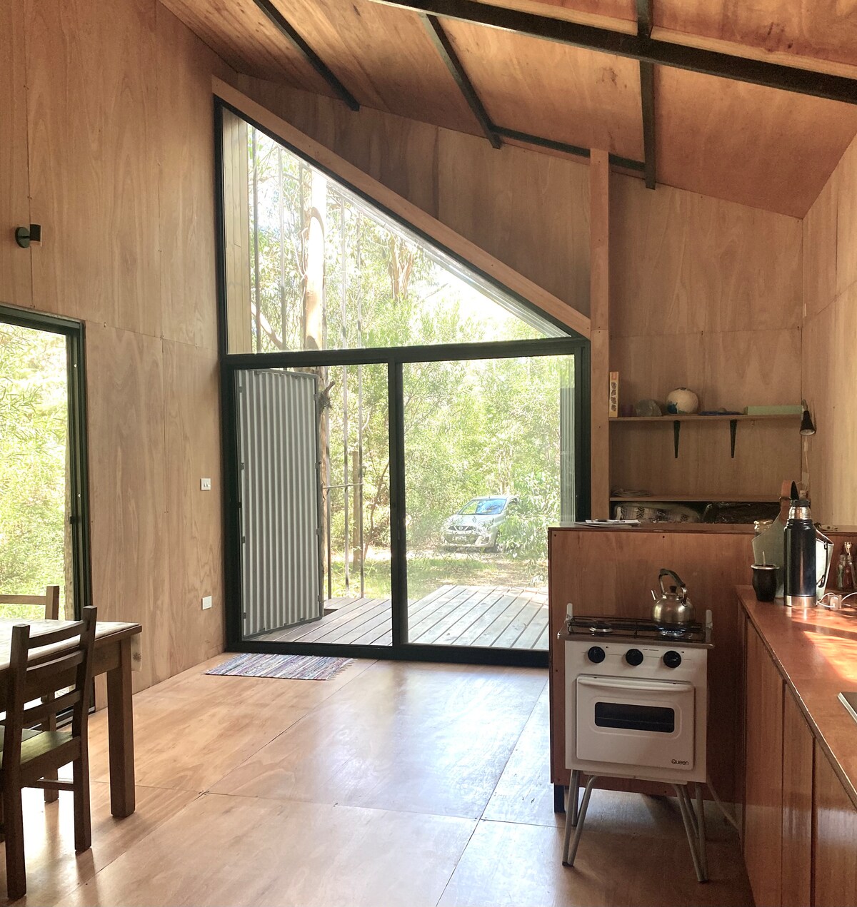 Casitas_del_ensueno: Cabaña a 50m. de la playa en medio de bosque nativo. Construida con materiales cálidos y de diseño, aberturas doble vidrio, estufa a leña, AC frio/calor, calefactores en los cuartos. Amplio espacio abierto living-cocina con todo para 4 huéspedes (max. 3 adultos), 1 dormitorio en suite con salida al deck, 2do dormitorio con cama nido (twin) y 2do baño. Wifi por FibraOptica. Pura luz y bosque a un paso del río. Estacionamiento 2 autos, parrillero, TV, hamaca, sillas de playa.
