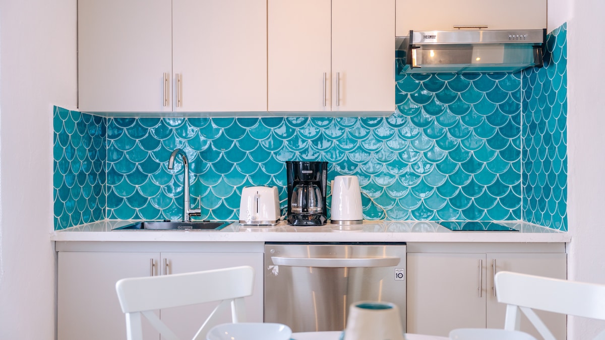 Escape to paradise in our charming second-floor apartment nestled within a lush tropical garden. Enjoy breathtaking ocean views from your private balcony just steps away from the pristine, private beach - recognized as one of the most beautiful in the Caribbean. Free chairs & umbrellas right in front of you. This cozy retreat features a queen-sized bed, fully equipped kitchen, modern bathroom, and comfortable living area. Amenities include air conditioning, WiFi, and complimentary beach towels.