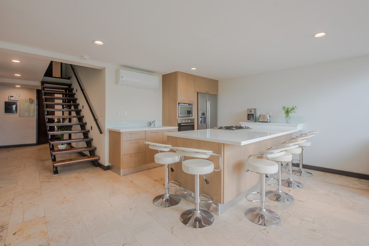 Doživite razkošje in udobje v OSRČJU Playe del Carmen! Popolnoma novo dvonadstropno predelano stanovanje z zasebnim potopnim bazenom in osupljivim razgledom na streho. Le nekaj korakov od neokrnjenih plaž in živahne 5. avenije. Vrhunci: ✔ Sprejme do 4 goste ✔ Zasebni potopni bazen izven spalnice ✔ Streha s pogledom na ocean, plinski žar, ognjišče in jacuzzi Odlična ✔ lokacija v soseski Zazil-Ha