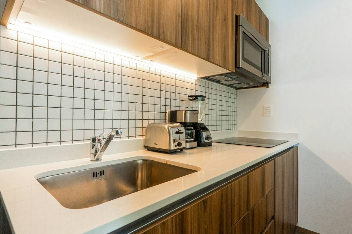 Comfortable apartment for 4 people. In a building specifically designed for tourism. Equipped gym, roof with pool, elevator, green areas, lobby and coworking area with high speed internet. Enjoy Playa del Carmen in one of the quietest areas of the city. In front of the "La Ceiba" cultural park and just 8 minutes from the beach. If what you are looking for is a quiet and well located place in Playa del Carmen, this is the option!