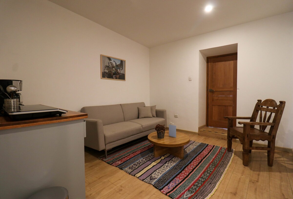 V naši luksuzni koči doživite popolno zlitje andske zgodovine, sodobnega udobja in narave. Osupljiva kamnita stena uokvirja bivalni prostor, medtem ko hortenzije na vrtu in dežna prha pod steklenim stropom vabijo k miru in povezavi med notranjimi in zunanjimi prostori. Nekoč sveta dežela inkovskega rodu Manco Cápac, kjer so obredi častili Zemljo, ponuja tiho lepoto le 10 minut hoje od Sacsayhuamána in Plaza de Armas. Recikliramo in kompostiramo, da ohranimo spoštovanje do narave