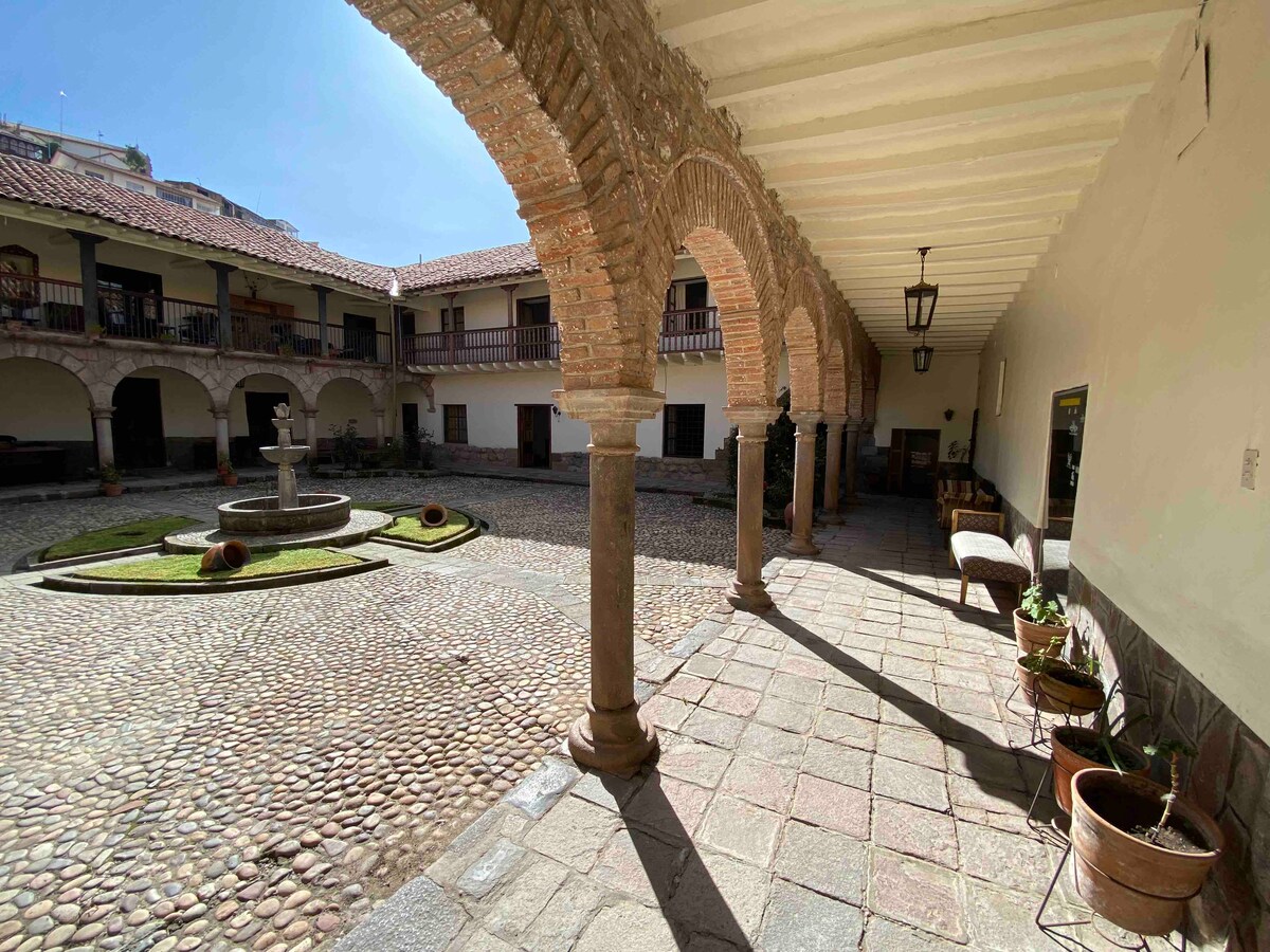 Welcome to Jardín Secreto Residence. Stay in the heart of Cusco at our cozy and luxury loft in a colonial mansion from the 16th century, just 3 blocks from the Plaza de Armas and 1/2 a block from the Qorikancha museum. Experience modern comfort with a touch of local charm, ideal for exploring the city's rich history and vibrant culture. Perfect spot for couples, families or friends seeking comfort and convenience in a central location. Located in one of the private gardens of the mansion.