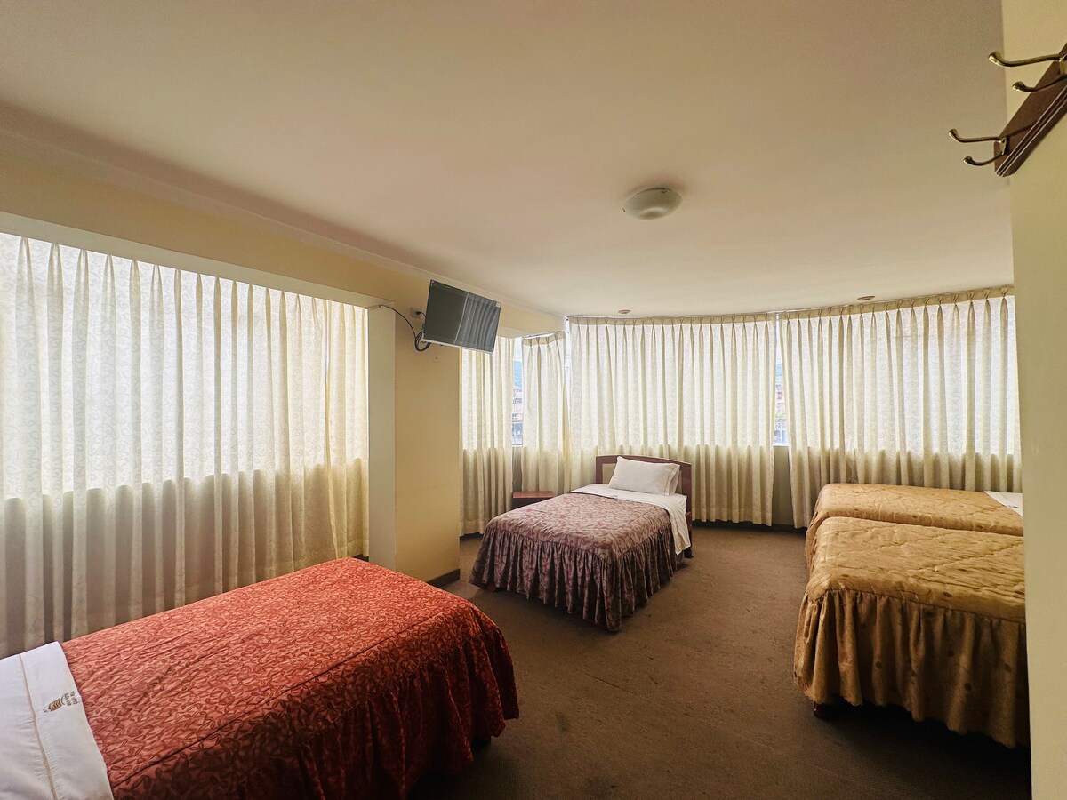 Udobna soba v hotelu Cajamarca Bonita, uživajte v udobnem in sproščujočem bivanju v naši udobni sobi, ki je idealna za popotnike, ki želijo počivati po raziskovanju Cajamarce. Nahaja se le 10 minut hoje od trga Plaza de Armas in boste imeli enostaven dostop do glavnih turističnih točk, restavracij in trgovin, ne da bi pri tem žrtvovali mir. Soba ima med drugim zasebno kopalnico, toplo vodo, Wi-Fi, televizijo Nerflix in HBO.