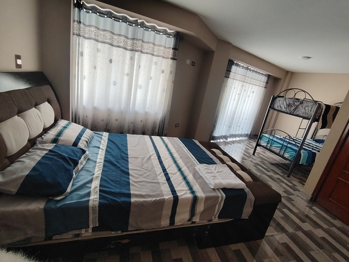 Dobrodošli v naši udobni sobi v središču mesta Cajamarca! Nahaja se le 3 ulice od zgodovinskega trga Plaza de Armas in boste uživali v udobju in miru, ki ju ponuja ta prostor, z enostavnim dostopom do glavnih turističnih znamenitosti, restavracij in lokalnih trgovin. Soba je zasnovana tako, da vam zagotavlja sproščujoče vzdušje z udobno posteljo, zasebno kopalnico in preprosto, vendar sodobno dekoracijo.
