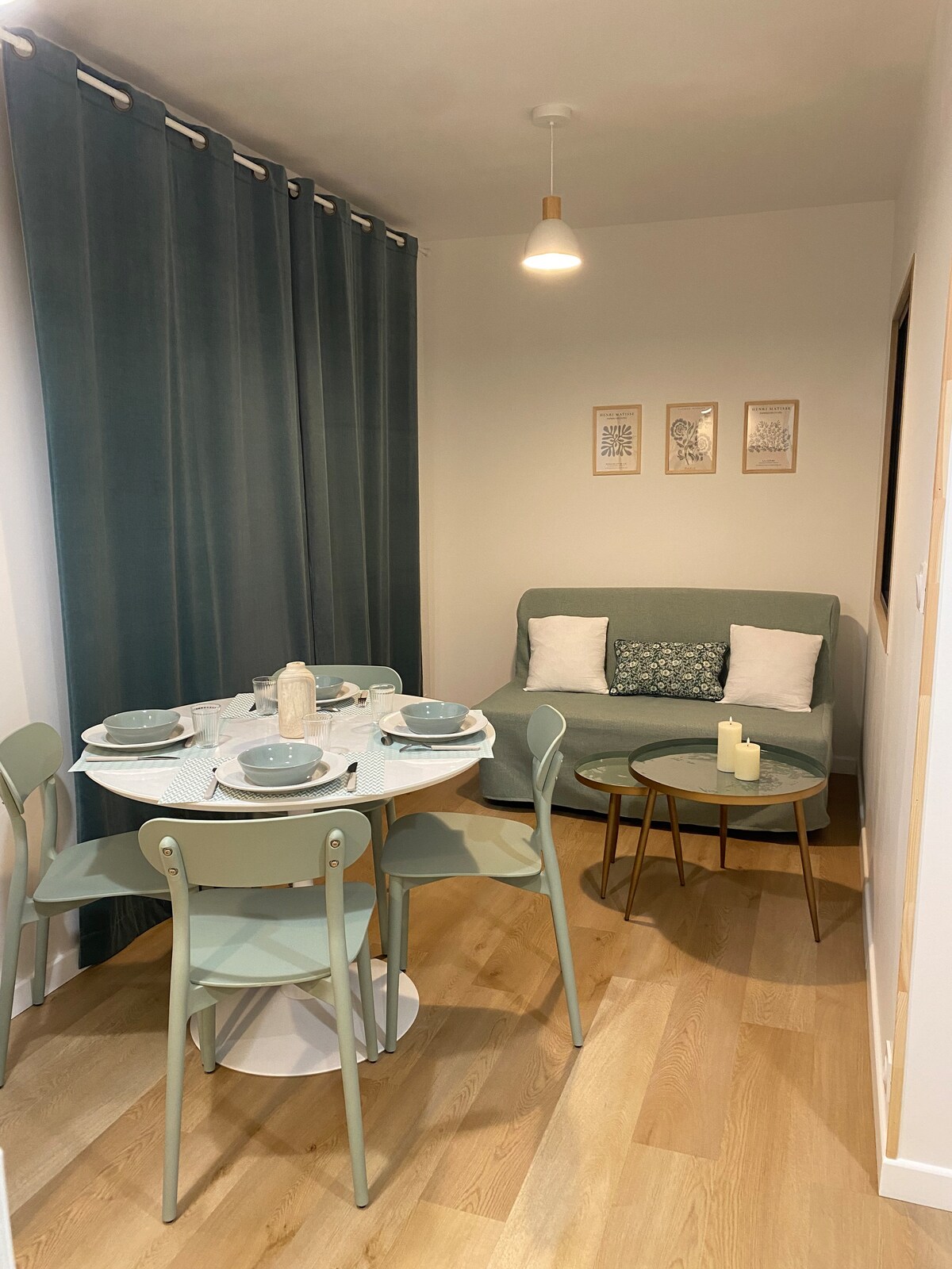 To očarljivo prenovljeno 23 m2 veliko stanovanje se nahaja v središču mesta na začetku ulice Rue Albert 1er. Nahaja se v bližini pristanišča in zgodovinskega središča v prvem nadstropju majhne samostojne hiše na našem posestvu. Za dostop do prenočišča morate iti po stopnicah. Vstop je skozi garažo z varnostno škatlo za ključe Posteljnina in kopalniško perilo sta na voljo Če pridete v dvoje in potrebujete posteljnino za raztegljiv kavč, se zaračuna dodatnih 15 € ⚠️ni omrežja Wi-Fi
