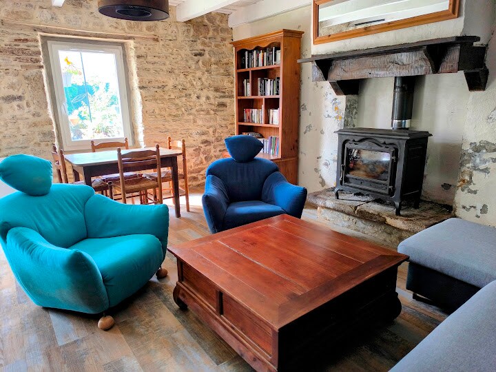 Kamnita hiša v mirnem zaselku. Žarki in izpostavljeni kamni. Kamin z vložkom 1 zaprt notranji vrt in 1 majhen vrt pred hišo. Žar, vrtna garnitura in ležalniki. Brezplačno od: 2 kajaka + jopiči za jadranje po blavici, ki je oddaljena 100 m, 2 mestni kolesi. Livebox 1 Gb/s fiber opener and 700 Mbit/s on stream. Brisače, vrečke za smeti in čistilna sredstva. Filtri za kavo, sladkor, začimbe, sol, olja ... Aluminij...