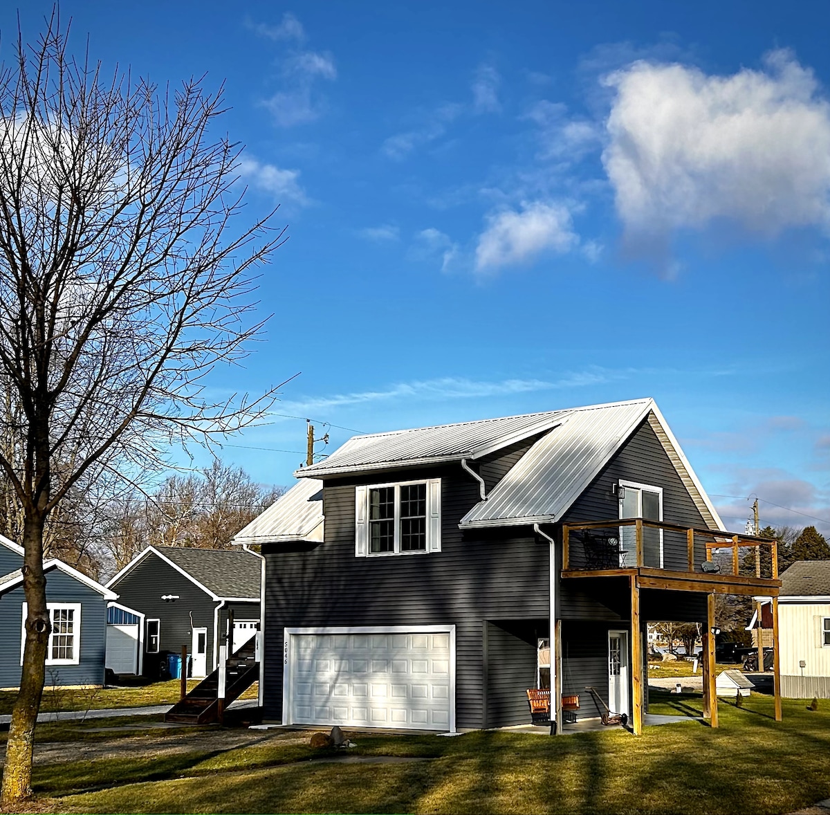 »brezskrbna HIŠKA NA DEŽELI« Zasebno prenočišče ob jezeru Woods. 35 min. do Notre Dame in 19 min. do amiške države, Nappanee, IN. To očarljivo trisobno prenočišče v mirnem okolju je popoln kraj, kjer lahko z družino in prijatelji ujamete preveč potrebnega prenočišča za rekreacijo. Parkirajte čoln na našem zasebnem pomolu ali pa uživajte v opazovanju prostoživečih živali, sončnih zahodov itd. Opazujte gracioznost velikih modrih čaplj, mama race s svojimi racami, in morda boste videli plešastega orla!