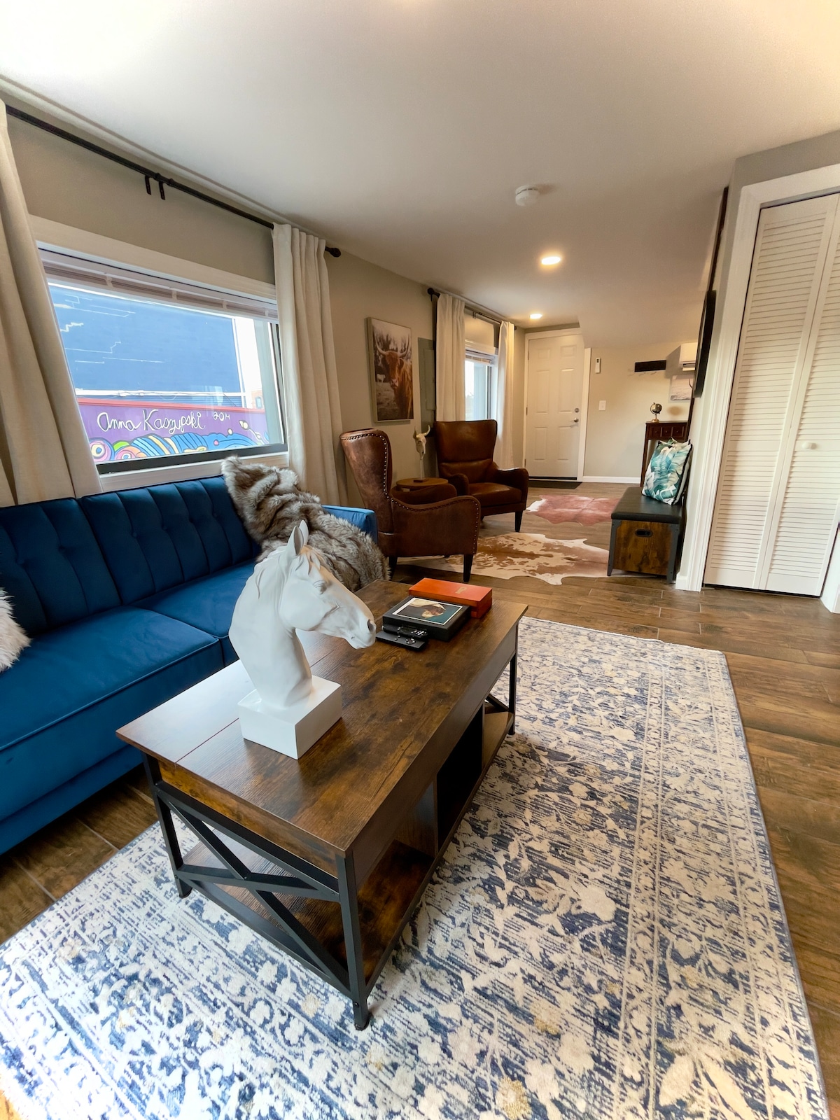 Potopite se v osrčje središča mesta Jim Thorpe na ulici Historic Race. Raziščite živahno kulinarično sceno, sprostite se v trendovskih barih, nakupujte po vsebini svojega srca in se odpravite na razburljive pustolovščine, kot so kolesarjenje, pohodništvo in rafting. Ta odlična lokacija zagotavlja nepozaben čas! *Upoštevajte, da bo spalnica z enojno posteljo odprta le, če bo k vaši rezervaciji dodana tretja oseba ali če se predhodno obrnete na nas - sicer bo ta soba zaklenjena.*