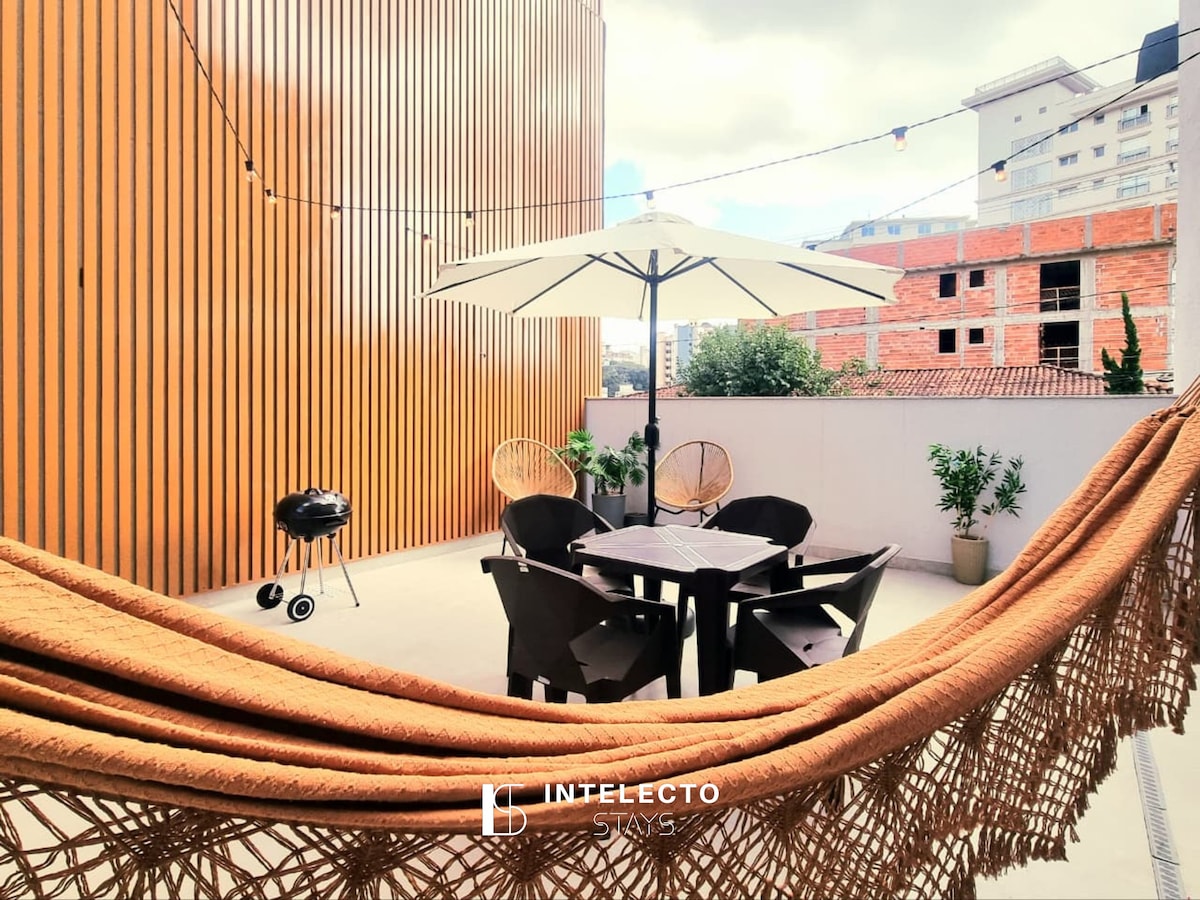 Exceptional apartment to relax and enjoy all that Poços has to offer. Whether for a few nights or months, our apartment is ideal. Building in the city center, close to everything, with 24-hour virtual concierge, elevator, laundry, rooftop with jacuzzi, gym, games room and gourmet area; fully furnished and equipped, very functional and comfortable. Easy self check-in, excellent internet, Smart TV, plus covered parking space. We provide towels, bed linen and blankets.