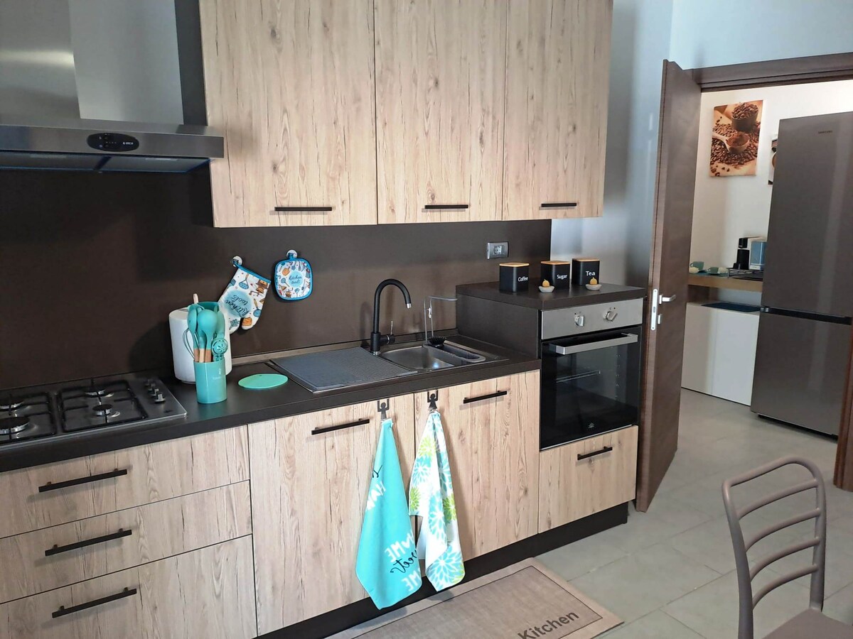 Appartamento 6 p.letto con vista mare, luminoso,a pochi minuti dal mare e dal centro storico,raggiungibili sia in auto che a piedi. Composto da: 2 CAMERE MATRIMONIALI(+letto singolo in aggiunta se richiesto)tv,WIFY,aria condizionata,angolo cottura completo,2bagni con doccia,sala da pranzo,ampia terrazza,con divani,lavanderia,giardino con barbecue,angolo solarium,dove si puo'godere in tranquillità ed intimita'lo splendido scenario della baia di Castro.Ideale per coppie,famiglie e gruppi d'amici
