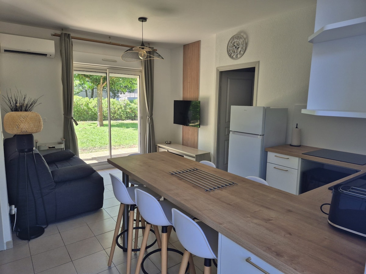 T2 à Saint Florent , meublé de tourisme 3 étoiles. Disponible minimum 2 nuits hors saison Disponible uniquement du samedi au samedi du 29 Juin au 31 Août. Situé dans la résidence Suarella à 250 m de la plage de la Roya avec piscine collective et aire de jeux pour enfants. Dans un parc arboré de 2 hectares avec gardien. Parking gratuit et sécurisé. La chambre dispose d'un lit en 140 La salle à manger climatisée comprend un canapé lit rapido avec literie haut de gamme.