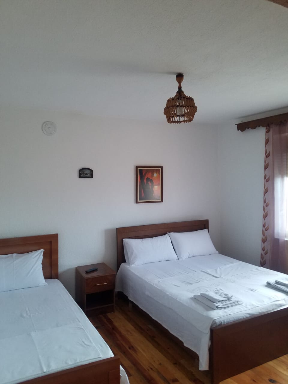 2 spalnici prostorno stanovanje s čudovitim pogledom na Ohridsko jezero. 1 km od makedonske meje in le 4 km od centra mesta. V bližini centra vasi (kjer je bil posnet en legendarni albanski film) in v bližini nacionalnega parka Drilon.