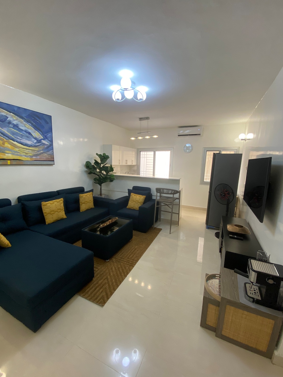 Vous apprécierez votre logement moderne de 120m2 (1292 ft) au cœur de Dakar avec climatisation, machines lave-linge/sèche-linge, chauffe-eau, Wifi, SmartTV avec Netflix, Youtube, Canal+. Vous trouverez 2ascenseurs, sécurité 24h/24, terrasse, aire de jeux. Les restaurants, boulangeries, Pâtisseries (BriocheDorée, EliteCoffee, PlanetKebab, Jakarlo, le Ndaje...), supermarchés (Auchan, Fast&Fresh, Casino), banques (SGBS, BHS, BOA) sont à 5mn de votre résidence.