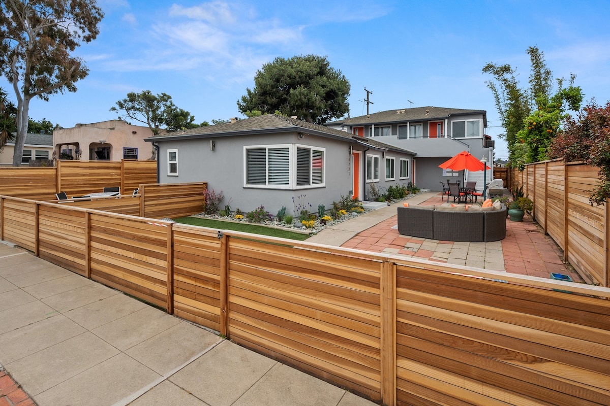 Ta sodoben prostor je le 2 ulici stran od oceana in se ponaša z najboljšim iz obeh svetov, ki se nahaja med mirnimi, mirnimi klifi ob sončnem zahodu in živahno plažo Ocean Beach. To sodobno prenočišče na plaži v južni Kaliforniji ima 2 spalnici, dve kopalnici in ločeno dnevno sobo (4K 55-palčna televizija in hitri gigabitni internet) / kuhinjsko nišo z mikrovalovno pečico, majhnim hladilnikom, aparatom za kavo, opekačem kruha in umivalnikom za pripravo. Zunanja terasa z ognjiščem, da vam bo udobno v hladnih večerih po dnevu zabave.