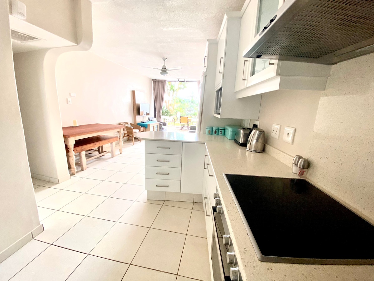 Sprostite se v tem mirnem in elegantnem prostoru z 1 spalnico in spalnim kavčem. Pozdravljamo par in njihovega otroka, da pridejo in bivajo v našem enosobnem stanovanju, 10 minut stran od letališča King Shaka. Imamo čudovito teraso, plinski Braai, zunanji salon, skupni bazen s pogledom na ocean. 5 minut vožnje od plaže. Osrednji del med Umdlotijem in Umhlango. 2 minuti vožnje od igralnice Sibaya. Dama v bližini. Dovoljena sta 2 odrasla in 1 otrok. Mirna ulica. Zabave, glasna glasba ali obiskovalci niso dovoljeni.