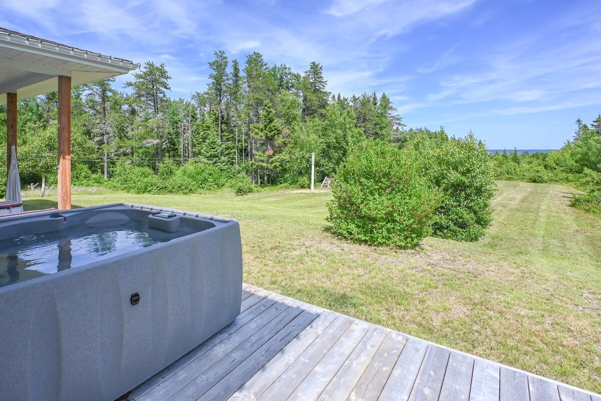 A spacious 2-storey chalet (1300 sq ft per floor) offering stunning panoramic views of the Gulf of St. Lawrence. Enjoy a private trail to the shore, direct access to the QuadNB trail, a spa on the terrace overlooking the ocean, and pellet stoves for a warm, cozy atmosphere. Includes a unique 3 km sea-to-land snowshoe loop. A peaceful 4-season nature escape to relax, recharge, and explore the beautiful Acadian Peninsula.