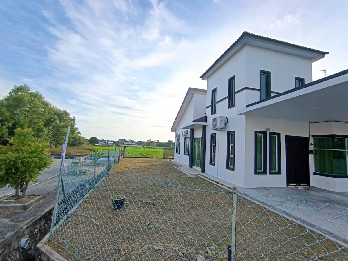 Welcome to Paddy View Home! A comfortable stay with beautiful paddy field views, free WiFi, and Netflix. Located near Langgar, Kedah, just a short drive to Alor Setar town (15 minutes). ✅ 2 bedroom (2 queen bed + 2 single bed in total) ✅️ 2 bathrooms with showers (without water heaters) ✅️ 4 towels provided ✅ Free parking ✅ Air conditioning in all room and living room ✅ Paddy field surroundings The house is located right next to the main road, so there may be some noise from passing vehicles.