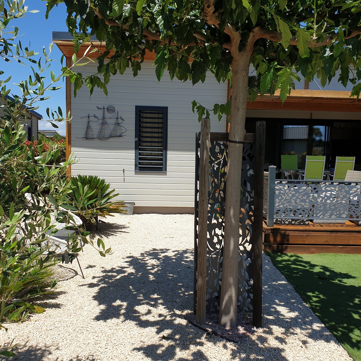 Topla hiška na zasebnem posestvu sredi vinogradov. 5 minut od plaž, ribnika Thau in vseh trgovin. 2 bazena, od katerih je 1 zaprt in ogrevan. Udoben planinski dom s tremi velikimi lesenimi terasami, vrtnim pohištvom in sončenjem.