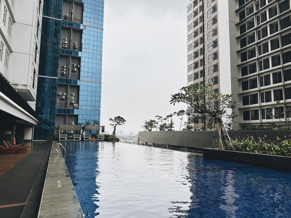 Professionally Managed by Kozystay Discover modern elegance in South Jakarta with our chic 1-bedroom apartment. Relax with top notch amenities including an outdoor pool and gym, all just moments from vibrant dining and shopping destinations. The perfect blend of style, comfort and local flair awaits book your stay today! AVAILABLE TO GUESTS: + Digital Check-in + Professionally Cleaned (disinfect) + Hotel Grade Amenities & Fresh Linens + Free High-Speed Wi-Fi & Cable TV + Free Access to Netflix