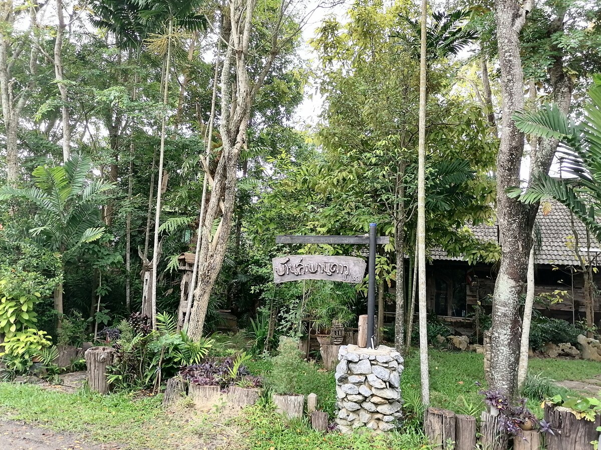 »Kraj, kjer boste najbližje naravi.« Čudovita hiša v tajskem slogu na kolih , ki se nahaja na zelenem travniku s pogledom na rečni ovinek. Sprostite se ob reki, kjer se lahko sliši zvok tekaškega potoka za nedoločen čas, ne glede na to, kje ste v hiši - resnično edinstveno. Trdno verjamemo v ohranjanje lokalnih dreves. To prepričanje je namenjeno vsem gradbenim delavcem, ki so zgradili objekt za nas.