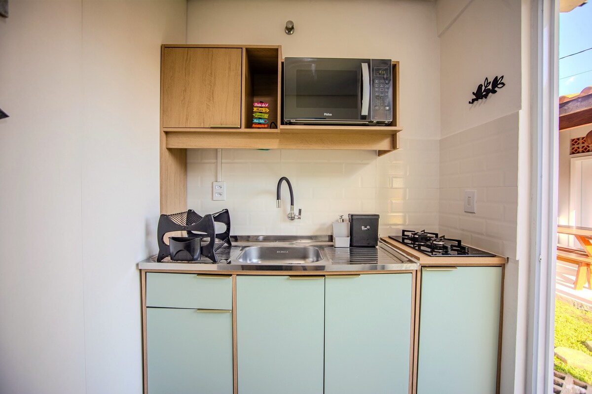COTTAGE BOSQUE DA BRAVA Podaljšan in prilagodljiv delovni čas: ♡ Prihod: od 8.00 ♡ Odhod: do 18:00 Romantično, udobno in zasebno! Equipado, rustikalen in v alpskem slogu, za nepozabne trenutke! Idealno za par, vendar lahko udobno sprejme tudi 3 osebe. Enostaven dostop, varen in s pokrito garažo. Privilegirana lokacija, 1.200 metrov od 3 čudovitih plaž: Brava, Ponta das Canas in Lagoinha do Norte.