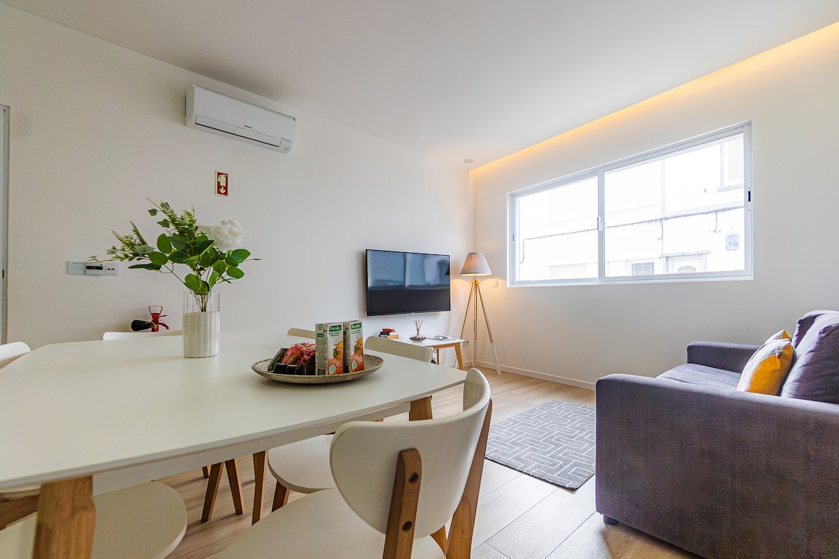 IG in FB @ epicenter.azores Bivajte v slogu v tem očarljivem, mirnem prenočišču v Ponta Delgadi. Uživajte v udobju zvočno izoliranih oken, sodobnega pohištva in popolnoma opremljenega prostora. 🚶 Lokacija: Koraki od restavracij, trgovin, parkov in nočnega življenja 10 minut vožnje z avtomobilom od letališča 🛏️ Št. ležišč: 1 zakonska postelja (Queen) v prostorni spalnici 1 dodatno ležišče za dodatnega gosta 🍳 Kaj je vključeno: Popolnoma opremljena kuhinja Terasa, dostopna iz spalnice in kuhinje Optični internet