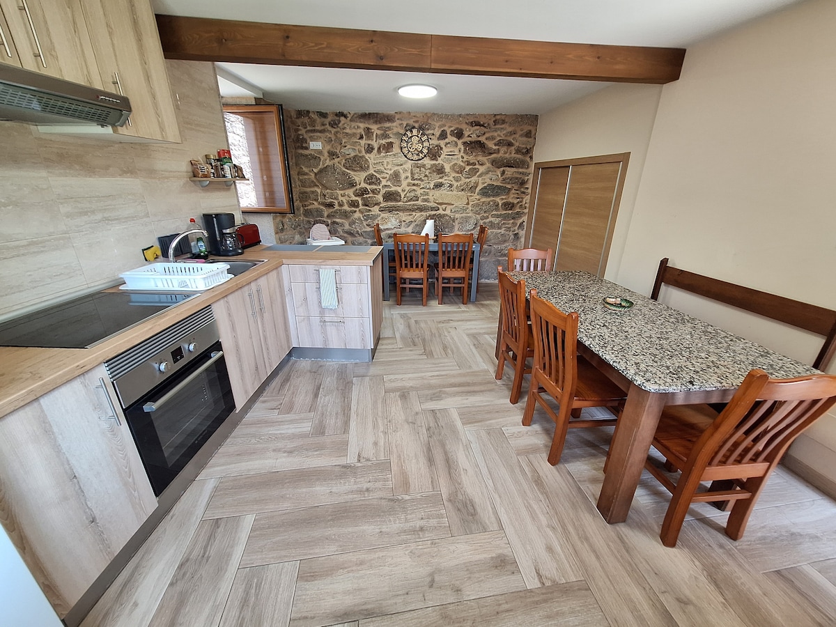 Tenemos como objetivo, que te sientas como en casa con las todas las comodidades. Reformada en Junio de 2023, en el interior el techo con vigas de madera , paredes de piedra y suelo de tarima. Tenemos una cocina totalmente equipada, salón comedor espacioso. A la hora de dormir un cuarto con dos camas de 0,90 m. pudiendo juntarlas para convertirse en una cama de matrimonio, y 2 cuartos con cama 1,50 m. Al aire libre, puedes disfrutar de una piscina con una terraza ajardinada y barbacoa.