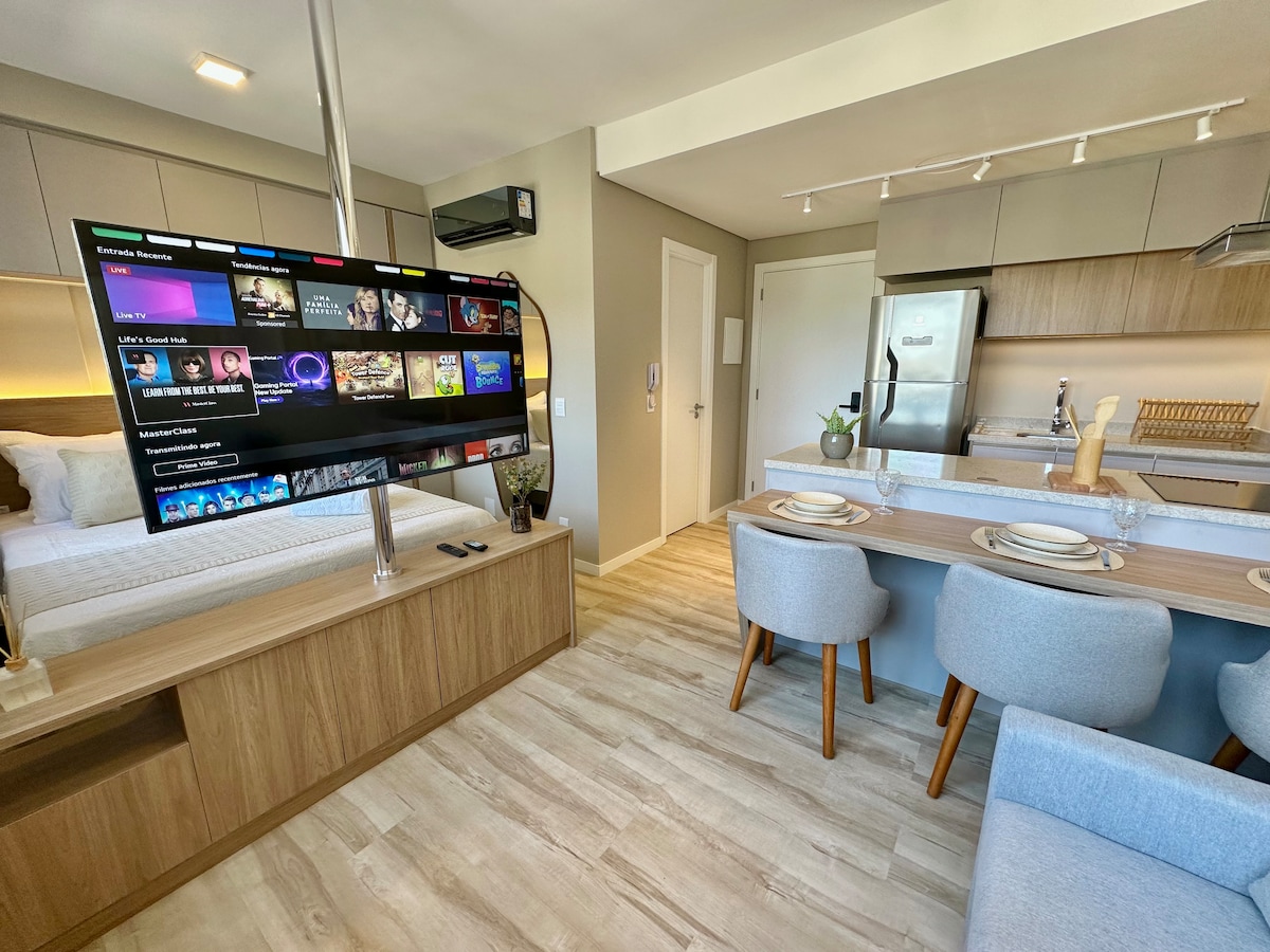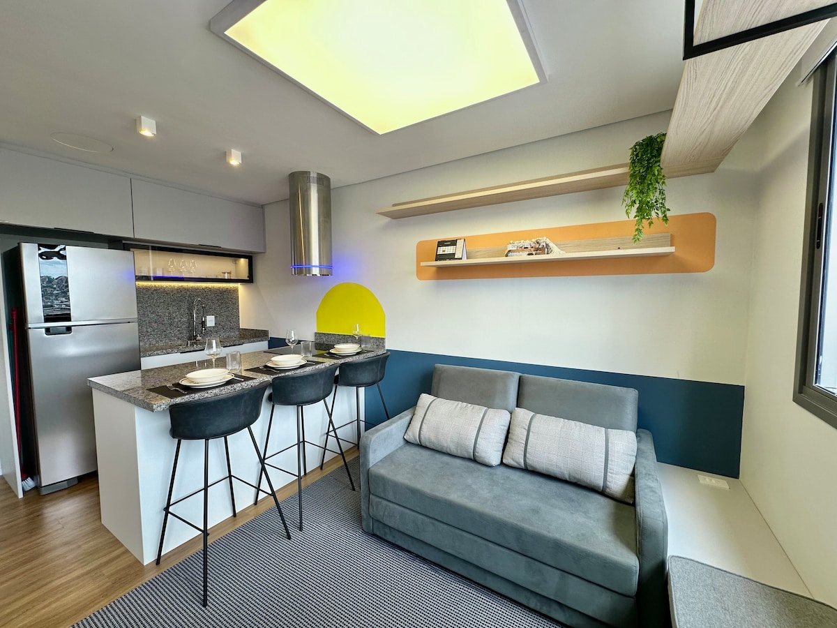 Garsonjera s pogledom na park in avtomatizacijo/Alexa. Zaprta garaža, kuhinja z osnovnimi potrebščinami in posteljnina/kopalna posteljnina. Nahaja se v osrednjem predelu, na strehi z bazenom, telovadnico in coworkingom. Parque da Redenção je le nekaj metrov stran, ekološki sejem in Brique ob vikendih, gastronomija Refúgio do Lago in predstave v avditoriju Araújo Vianna. Blizu barov, restavracij in nočnega življenja v soseski Cidade Baixa/Bom Fim. Enostaven dostop do Orla do Guaíba, univerz, bolnišnic in drugih sosesk.