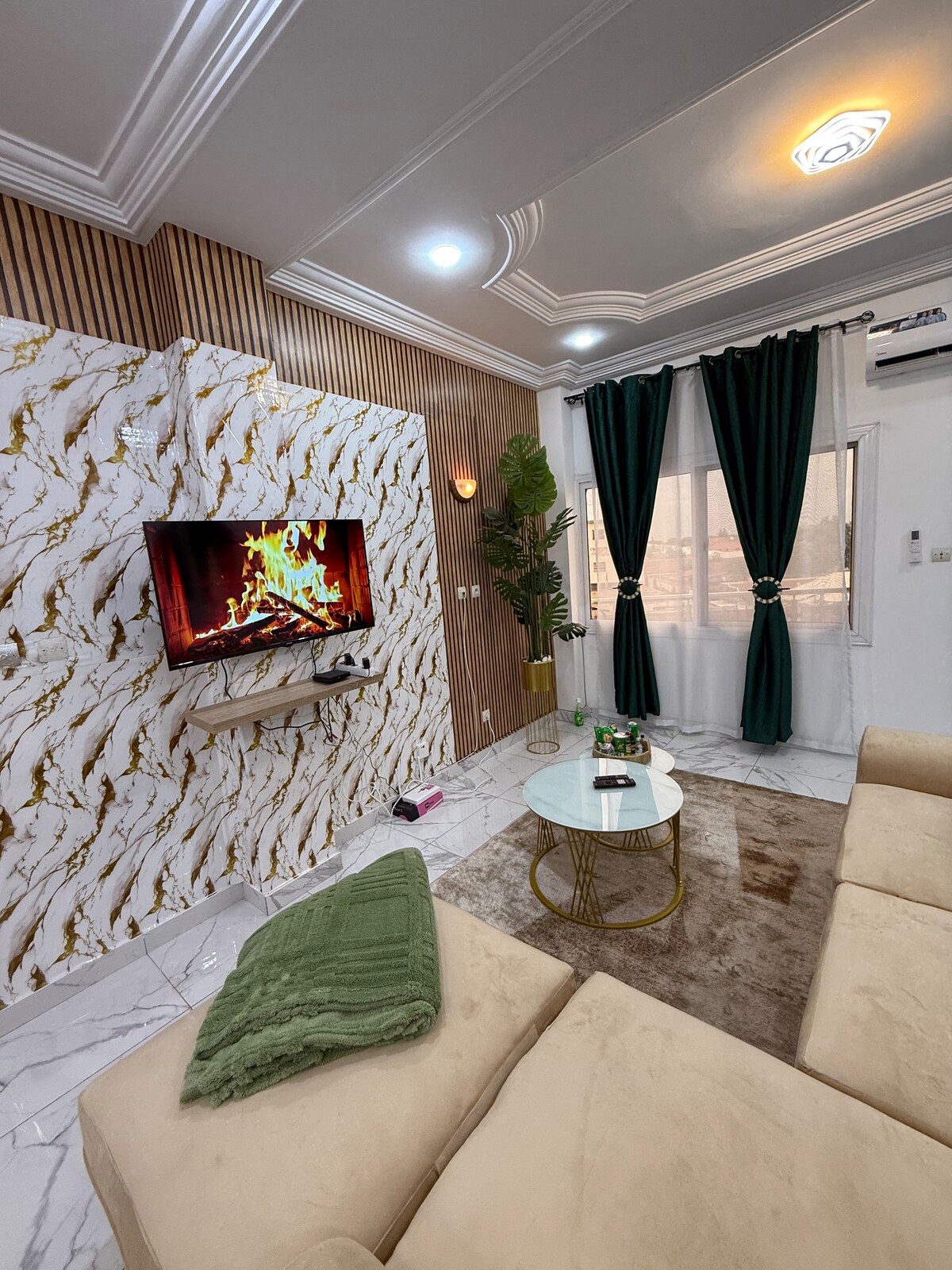 • Osupljivo stanovanje v celoti opremljeno, v dveh spalnicah, dnevna soba, kuhinjska niša, kopalnica in sodobna stranišča. • Ima velik 55-palčnizaslon QLED z Netflixom in povezavo Wi-Fi. • Dnevna in nočna straža, non stop storitev čiščenja, zavarovana z alarmnim sistemom in električno ograjo ter nadzornimi kamerami. • Elektronski generator v primeru izpada električne energije, serije vode in zasebnega parkirišča.