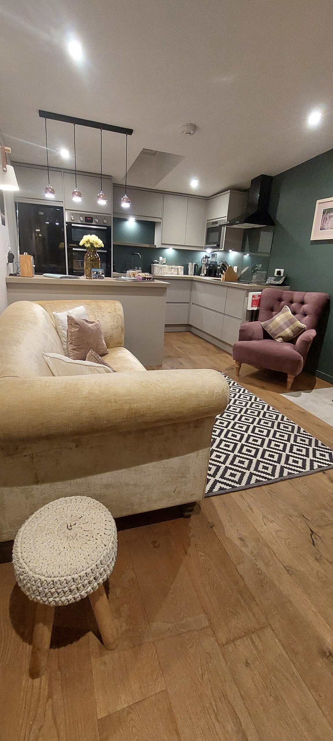 Awaken in a bright, cheerful space with views of a quaint village from first floor windows. A cottage-like feel is created by painted wood panelling and traditional furnishings designed for comfort. Have breakfast at table nestled under a skylight. Situated in a peaceful Cornish village, Little Anvil occupies a central position (both the north and south coast are within easy reach) ideal for exploring beautiful West Cornwall. A newly converted first-floor apartment which forms part of the owners 18th century cottage, one of the oldest in the village. With its own private entrance, the apartment is full of character, with luxurious touches and modern appliances - a welcoming and comfortable place to return to after your day out. In addition to this we are next door to the village pub, where you can relax with a drink in the beer garden, have a meal or chat with locals. The pub also has a small shop for essential supplies. The open plan living/kitchen area is well equipped with a large flat screen, Smart TV for relaxing in the evening, plus a Bluetooth speaker for your music and free wi-fi. If you like to cook the kitchen/dining area facilities include an induction hob, full size oven, large fridge-freezer and dishwasher. There is also a washer-dryer should you need it, and heating for the colder months. The bedroom is decorated in a relaxing French style with a king-size bed, luxurious linen, and an en-suite shower room. If you are bringing your dog with you there is an enclosed outdoor courtyard area for convenience, which also has a covered storage area for bicycles/kayak. The nearest town is the historic market town of Helston (4 miles), famous for its Spring celebration - Flora Day. The thriving and pretty coastal town of Falmouth is a short drive (for visitors to the University campus, it is only a 10min drive) and the beautiful port of Porthleven with its many fine restaurants is also within a 15-20minute drive. Nearby is the stunning coastline of The Lizard Peninsula, or you could travel towards the evocative and mysterious landscape of West Penwith, stopping to visit St Michaels Mount on your way to unforgettable St Ives and beyond. West Cornwall has so many stunning places to visit, that we hope you will want to return time and again. Sole and private access to all areas of apartment with own private entrance and key for coming and going! The apartment also has an enclosed courtyard area with storage for bikes if required. Available to help if required, if we are not in - just give us a call and we'll get right back to you. The apartment is in the village of Porkellis, close to art and culture, restaurants, a beach, and family-friendly activities. West Cornwall is known for its heathland, golden sand, artists' colonies, ancient stone circles, and Iron Age villages. We are in a rural location, so a car is highly recommended. However there is a bus stop just outside the apartment, but village buses are mysterious infrequent animals. The nearest town is Helston, approx 4 miles, and the nearest train station, Redruth is 8 miles. The A30, which is the main road connecting Cornwall with the rest of the UK is approx 10 miles. Nearest ferry port is Plymouth (50 miles) and the nearest Airport is Newquay (31 miles). The nearest international airport is Bristol (166 miles) The apartment has its own entrance and courtyard and is adjacent to the main house which is occupied by the owners.