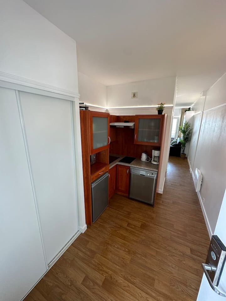Dobrodošli v našem očarljivem garsonjerju v Pornicu, ki se nahaja tik ob oceanu. Ta 3-osebni kokon je kot nalašč za bivanje v dvoje ali v majhni skupini in ponuja pristno doživetje ob oceanu. Udobno se namestite na našem raztegljivem kavču, ki ga dopolnjuje majhna dvignjena postelja za dodatno prilagodljivost. Lahko prinesete svojo posteljnino, vendar jo nudimo tudi mi za doplačilo.
