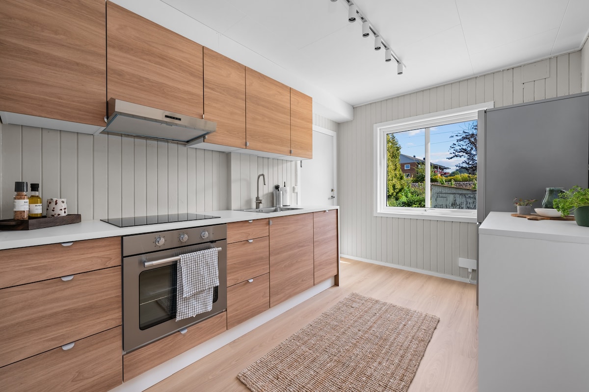 🏡Lys og koselig leilighet på 60 kvm med 2 soverom, privat inngang og gratis parkering. Rolig beliggenhet med natur rett utenfor, samtidig som sentrum, tog, butikker og restauranter ligger kun en kort kjøretur unna. Leiligheten har romslig stue, kontorkrok, fullt utstyrt kjøkken, varmekabler, samt tilgang til hage og utemøbler. Ideell for par, små familier eller jobbreisende som ønsker et sentralt, men stille opphold. Velkommen – vi gleder oss til å ha deg som gjest!