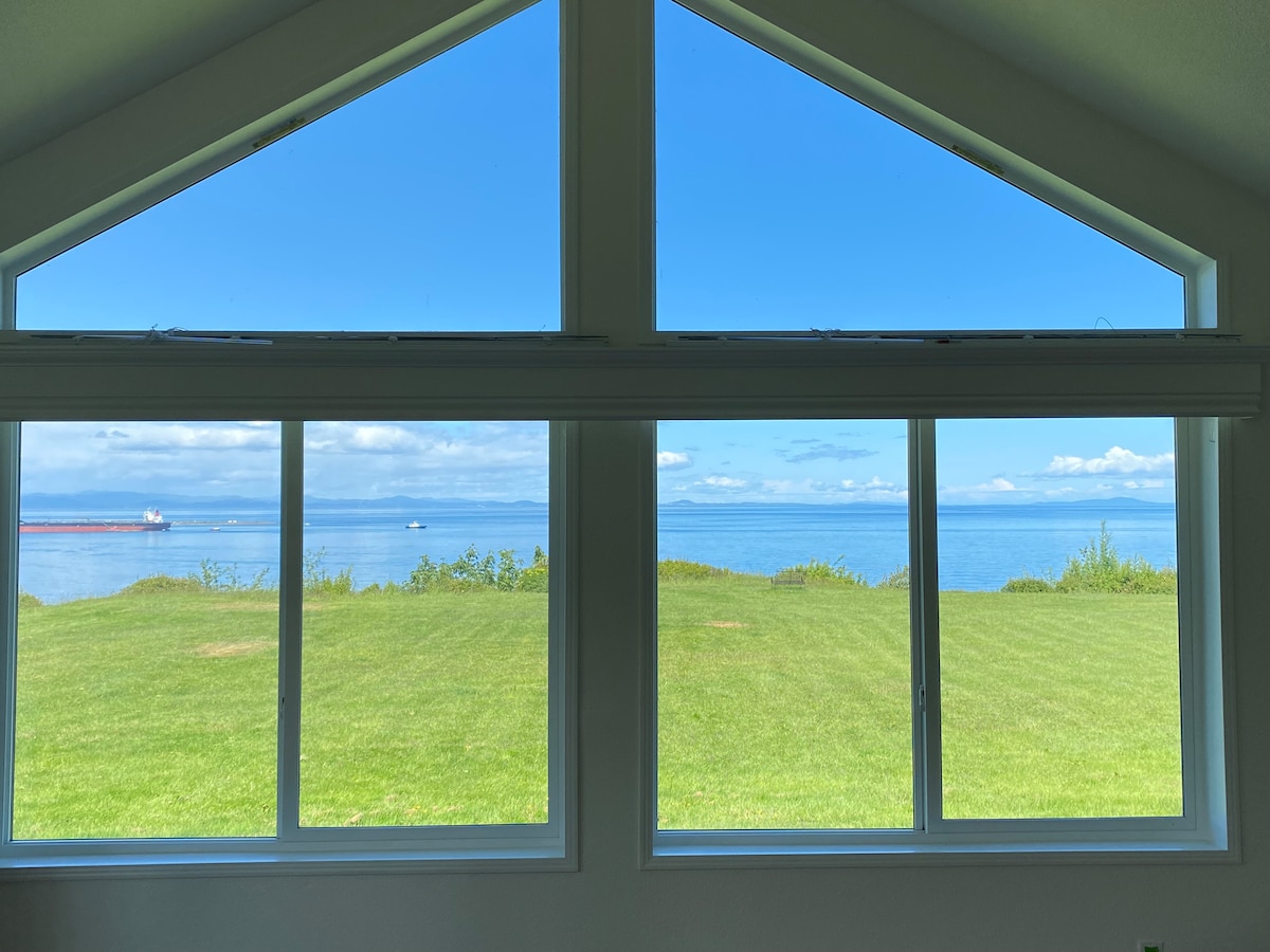 Vsako jutro vas pozdravljajo osupljivi razgledi na ožino Juan de Fuca in Victoria, medtem ko sedite in opazujete, kako ladje za križarjenje delijo osupljive večerne sončne zahode. Sprostite se in uživajte v spektakularnem razgledu iz tega novejšega prenočišča 3 BR-3BA na blefu v Port Angelesu, ki udobno sprejme 6 gostov in lahko podpira do 8 oseb. Vse sodobne ugodnosti (5 televizorjev, pretočni prenos, kuhanje na plin, žar, ognjišče). Nahaja se v središču mesta - do središča Port Angelesa in olimpijskega narodnega parka vas loči le kratka vožnja.