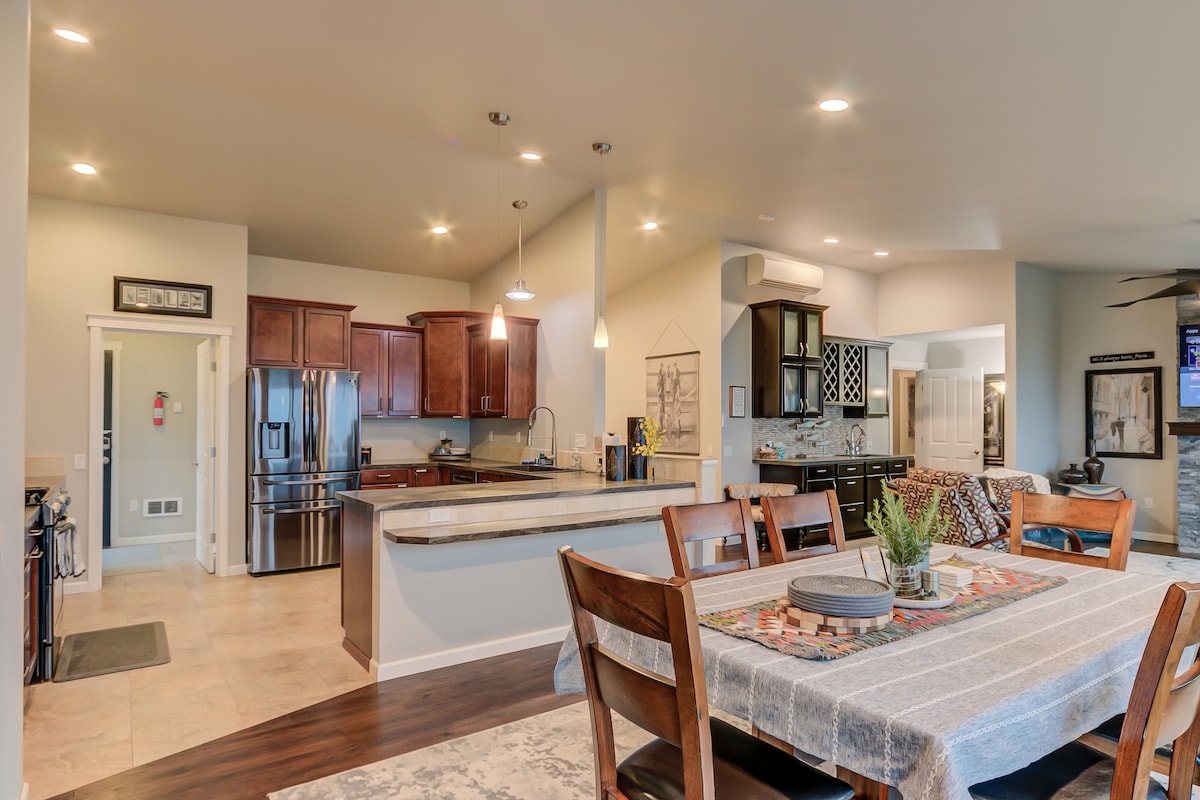 Uživajte v panoramskem razgledu iz našega enonadstropnega prenočišča z razgledom na prostost. To je popolno prenočišče za veliko družino ali oddih v paru. Uživajte v treh zasebnih spalnicah, od katerih je ena v spalnici s kopalnico. Vsaka spalnica ima drsna steklena vrata, ki vodijo na veliko teraso na dvorišču, kjer boste našli zunanjo jedilnico, počivališče in masažno kad. To prenočišče je raj za kustosa, ki vključuje umetnost iz obdobja, dekoracijo in pohištvo. Oglejte si našo insta @ pacweststays, da si ogledate kolut, ki si ogleduje prostor.