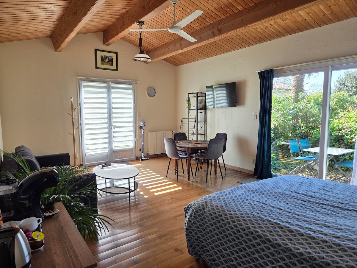Studio se nahaja 2 koraka od plaž, središča mesta in trgovin Port des Barques. Terasa ter zasebni in ograjeni vrt bodo navdušili goste in njihove štirinožne spremljevalce. Studio lahko sprejme 2 osebi (1 postelja v kraju 160x200). Vključuje opremljeno kuhinjo (mikrovalovna pečica, indukcijska kuhalna plošča, hladilnik/zamrzovalnik, aparat za kavo Senseo, grelnik vode in posodo), prostorno in funkcionalno prho ter ločeno stranišče.