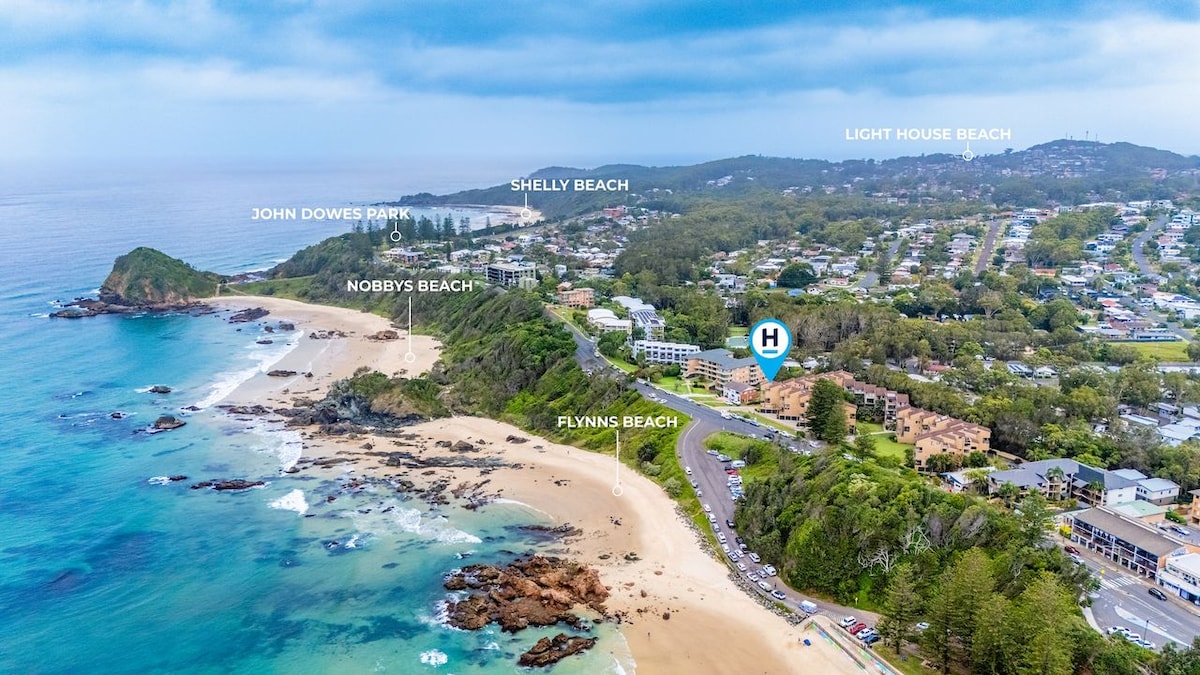 Svetlo počitniško stanovanje se nahaja v tretjem nadstropju (opomba: brez dvigala) in se ponaša z osupljivim razgledom na ocean in plažo Flynns z vašega zasebnega balkona. Uživajte v zvoku valov, srkajte kavo ali koktajle ali pa se sprehodite po cesti do plaže. Idealno za ljubitelje plaže in narave, saj ste blizu sprehoda ob obali, poti v deževnem gozdu, priljubljene kavarne Sandbox Café ter bližnjih trgovin in restavracij, vse to pa je le kratek sprehod stran.