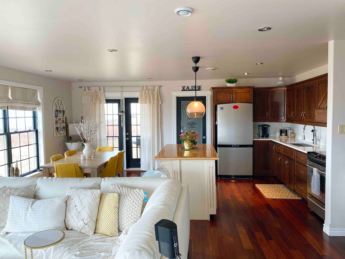 Pobegnite v naš raj ob oceanu v zalivu St. Ann 's Bay na slikoviti Cabot Trail! To popolnoma novo, prostorno 2-posteljno prenočišče ponuja sodoben dizajn in odprt koncept bivanja. Spanje 6 oseb s spalnico z zakonsko posteljo, spalnico s pogradi (zakonska postelja na dnu in enojna postelja) in raztegljivim kavčem. Uživajte v osupljivih sončnih zahodih, pogledu na gore in enostavnem dostopu do znamenitosti, pohodništva, izletov z ladjo in restavracij. Potopite se v čar in lepoto rta Breton ter med bivanjem ustvarite nepozabne spomine.